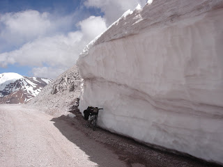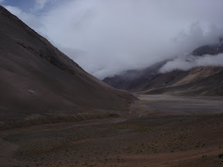 El dia empezó muuuy frio, a unos 20 km, un poco menos..17 km del paso del lado chileno, otra vez se congelaron las botellas de agua, pero no tanto como en el San Franciso. Me levanté muy tempranito, tipo 6, así que tipo 7, 7:15 salí.