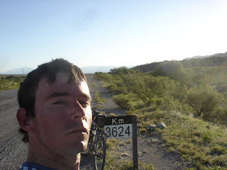 Llegué al puesto de vialidad provincial donde empezó el asfalto, así que ahi pude acelerar el paso, entrando rápidamente al valle, donde el tiempo amenzaba con lluvia. La única lluvia en el horizonte, luego de casi 20 dias!!...